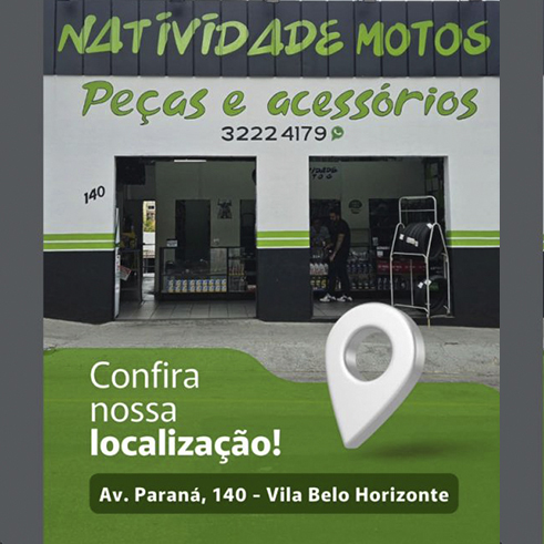 Você Está AquiHome >MOTO, PEÇAS E SERVIÇOS > Natividade Motos - Oficina - Peças - Acessórios - Profissionais de confiança - Serviços com qualidade/garantia - Oficina com Equipamento especializado para sua moto - Manutenção e troca da suspenção de moto com melhor preço - limpa, lubrifica e confere a tensão da corrente da sua moto - Especializado em Alinhamento de Chassi Moto com melhor preço - Divinópolis - Minas Gerais.